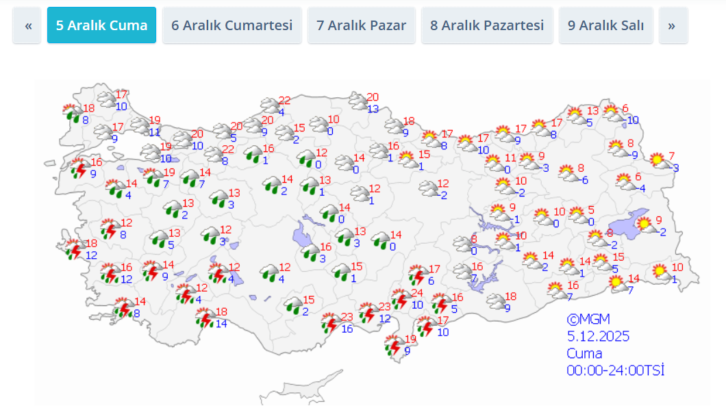 5 Aralık 2025 Cuma Günü: Yağışlar Batıda Etkisini Gösterecek